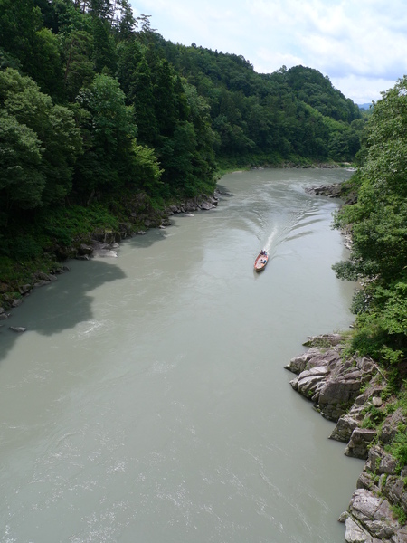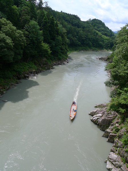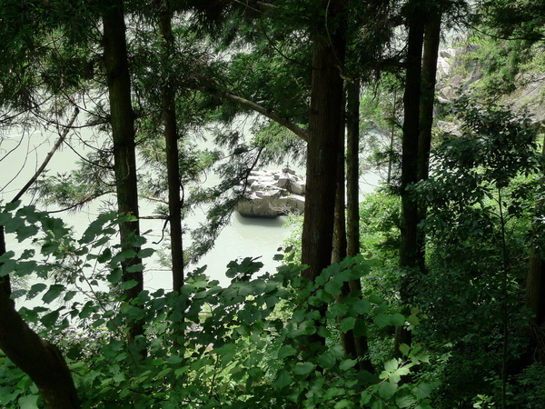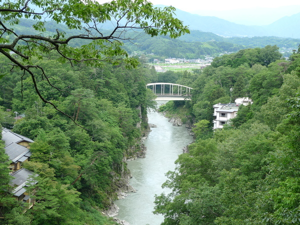 天龍峽位於國立公園內,天龍川的水源則是來自昨天才去過的諏訪湖,貫穿伊那谷之後注入太平洋,據說天龍峽兩岸高聳的巨大岩石會令人想起山水畫,我們到此附近,當然不會錯過。