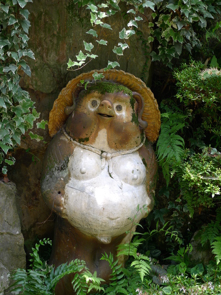 在路邊民家的院子中,看到很可愛的狸貓造型陶燒。