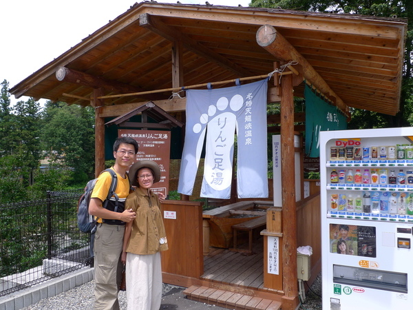 終於繞一小圈回到停車場旁的足湯小屋,但是天氣太熱,我們一點也不想脫鞋體驗。