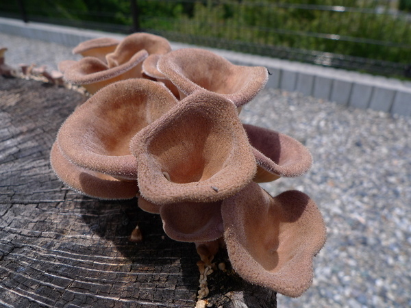 倒是在旁邊的木頭圓凳上看到毛茸茸的蕈類,甚是可愛。