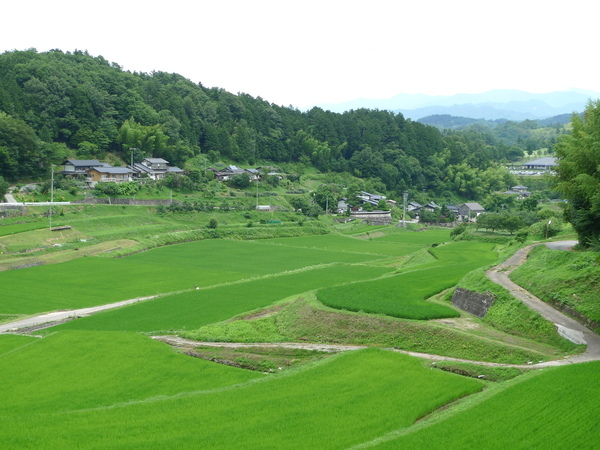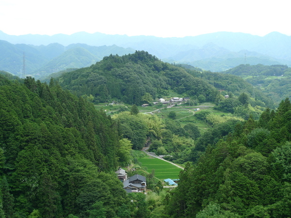 吸引我們停下來的是由橋右邊望去,山谷下的農田與遠方層層疊疊的山脈,讓人心曠神怡。