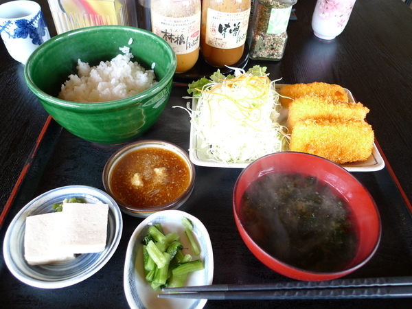 「豆腐定食」有「炸豆腐」與「生豆腐切片」沾芥末,生菜加上這裡特產的「蘋果味噌沙拉醬」相當好吃,我們買了一瓶回台灣。