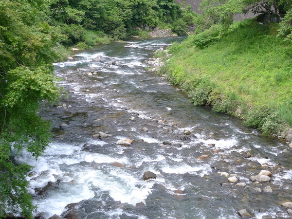 經過門原大橋,看到橋下兩邊的景色相當不一樣。
