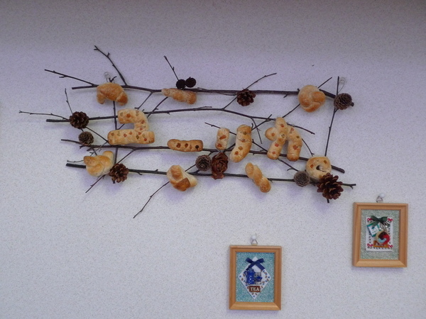 屋內佈置地很溫馨雅緻,除了有很多乾燥花做成的裝飾之外,還有用麵包做成「ユーリカ」字樣。