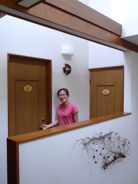 二樓的三間房分別雕刻著不同的動物當做房名,我們住在「牛」棚,另外兩間沒記錯的話分別是「豬」圈和「雞」窩,頗有趣,完全符合清里這一帶的牧場特色。