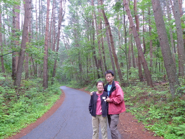 這一帶規劃為民宿村,夾道種著一大片的赤松,下過微雨的清晨,空氣顯得分外清新。
