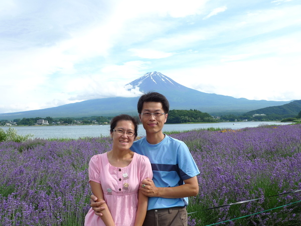 這一次終於拍到滿意的薰衣草加富士山照片,完成老公的心願!