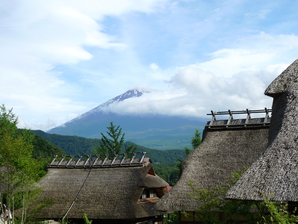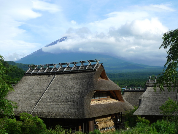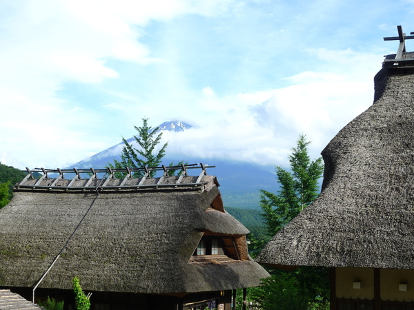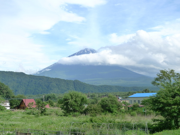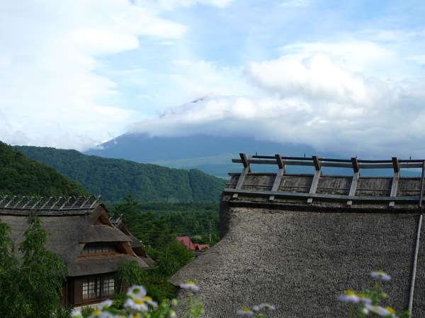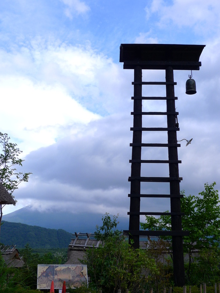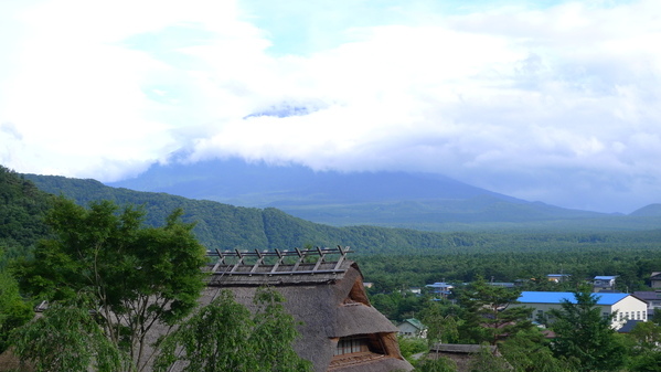 於是趕緊加快腳步,爬到村落的半山腰,富士山頂正被雲層迅速吞噬著,有照片為證: