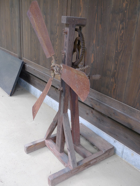 房子周圍有古早的手搖式風扇