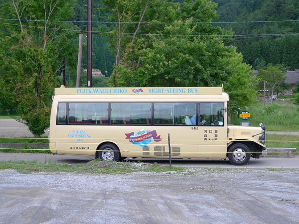 回到停車場,今天最後一班河口湖觀光巴士停在路邊等待遊客