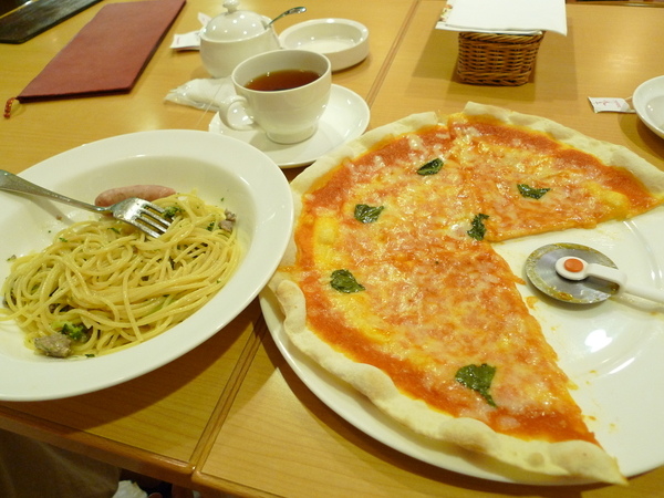 甲府是山梨縣最大城,往來的商務人士很多,餐飲店好多,但是居酒屋較多,燒烤味、酒味、談天聲讓我們聞之怯步,最後選了一家義大利餐廳。