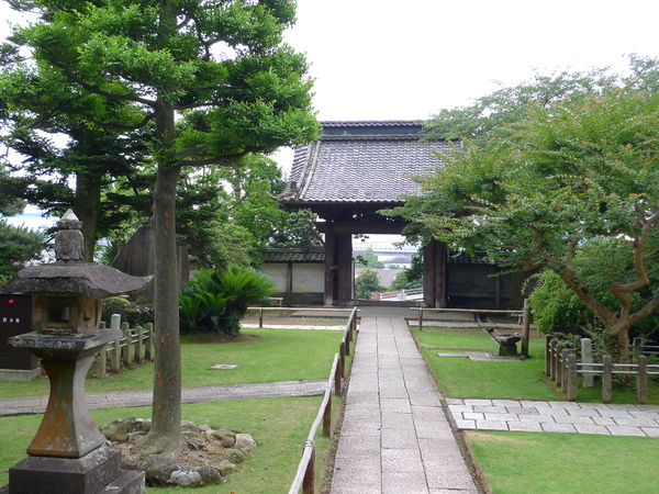 跨過鐵道橋,看見一座廟門,兩旁寫著:「巖腰山瑞雲寺 駿河一國觀音禮所」
