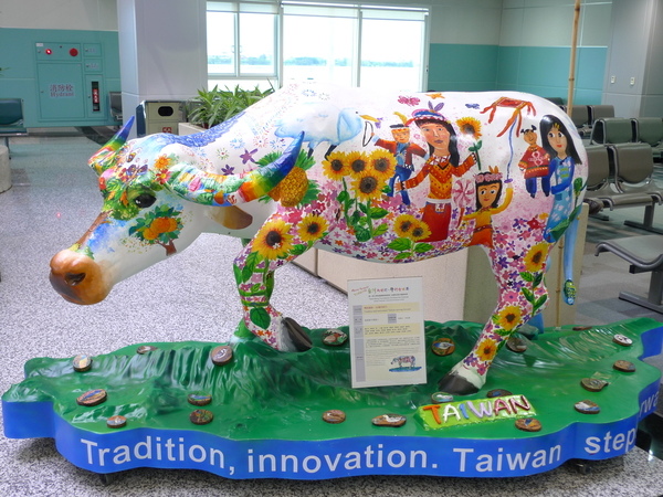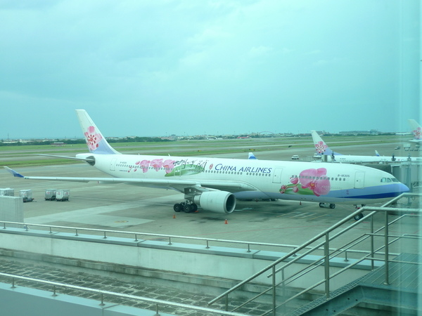 只好到處閒逛看飛機,發現一架畫有蝴蝶蘭的華航班機,興奮的猜想:我們等一下要搭的就是這台嗎?