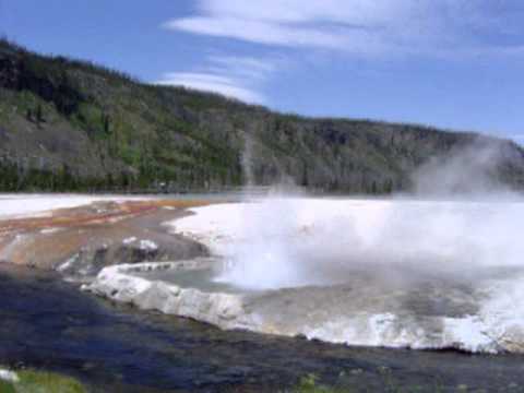 這一區最有名的就是Steamboat Geyser蒸汽船噴泉,它是世界最高的活溫泉,水柱可高達90公尺,光是噴完後的蒸氣聲就可以轟隆隆地響個好幾小時,可見能量有多大。