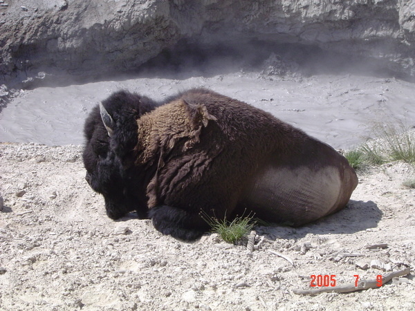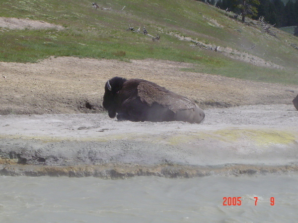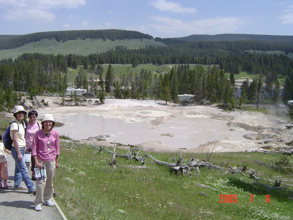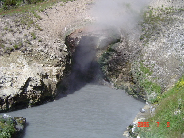 因含有大量的硫磺,所以是黃石公園中最酸的一池,PH值只有1~2,幾乎和胃酸一般,人若不小心掉到裡面,大概就融化光了吧!