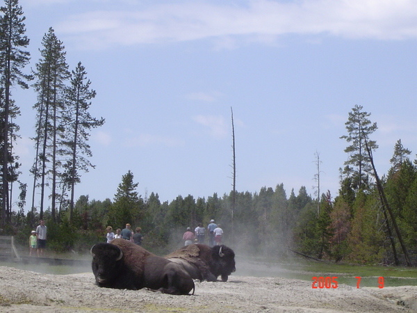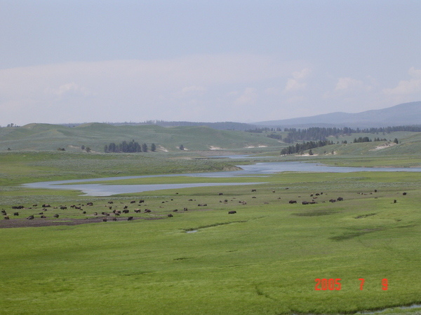 書中說這裡是看美洲野牛群的最佳地點,果然不假,照片裡一點一點的都是牠們。