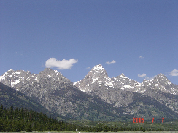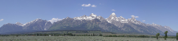 高山群由左到右分別是:南提頓、中提頓、大提頓、Mt. Owen和Teewinot。