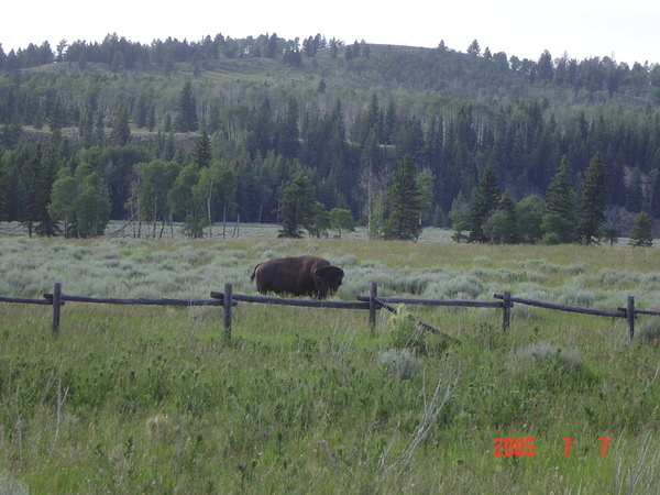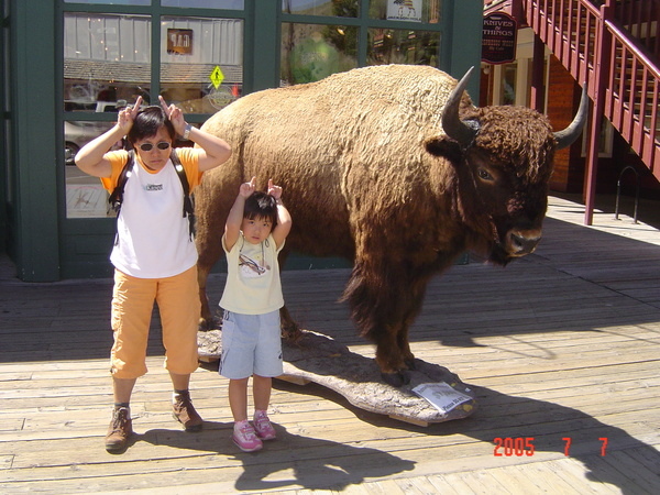 我們在開往下一個景點的時候,看到一隻美洲野牛Bison,興奮地下車拍照。