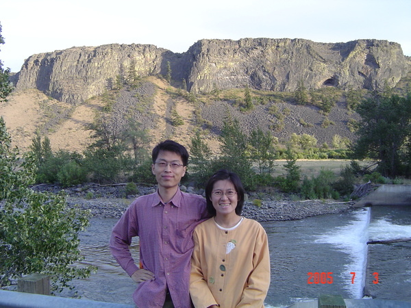 旁邊的石頭平平的,在夕陽下閃爍著金黃,因此我們替它取名為「平頭黃金山下的水壩」,結束美西之旅第一天的旅程。