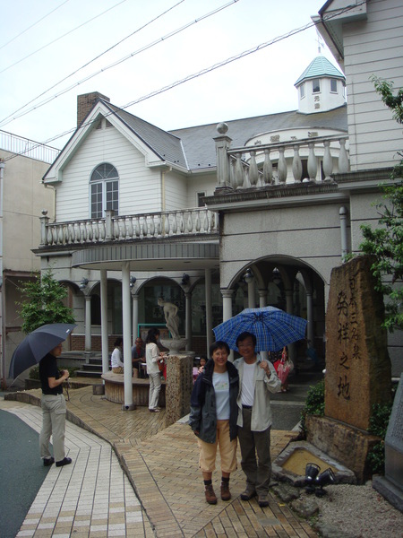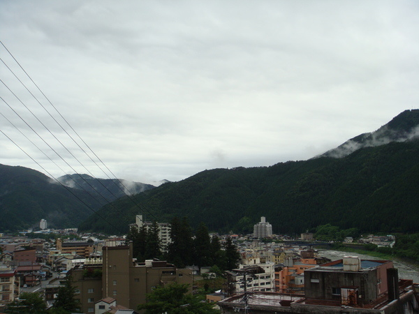 我們在廟前的廣場聽著經,眺望著溫泉街的景色。