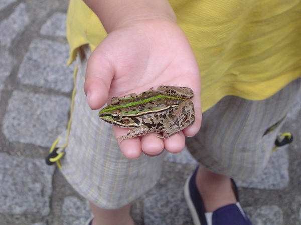 過了一會兒,又有一位可愛的男孩,手裡抓著剛從旁邊水溝裡抓到的青蛙給我們看,逗得我們幾個觀光客開心不已,發現社區營造得好,小孩也會教得比較好。
