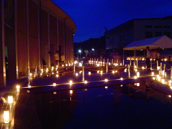 古川鎮的名產之一是蠟燭,下午經過「雕刻美術館」時,看到很多工作人員正在排蠟燭,為晚上的音樂會作準備,所以吃飽後就散步到這裡來湊湊熱鬧,整個庭園裡點滿了浪漫的燭光。