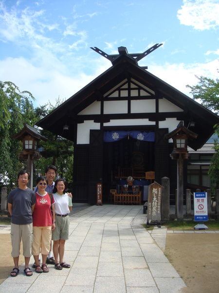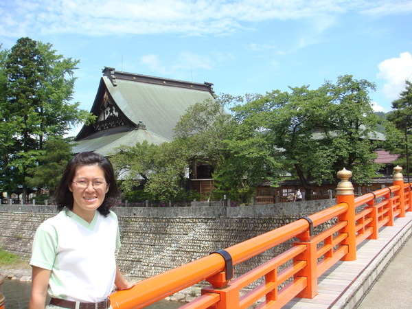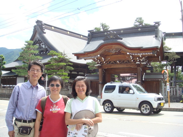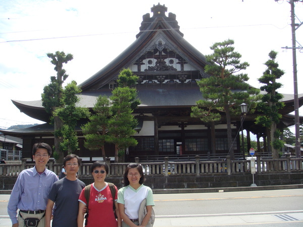 「本光寺」有飛驒地區最大的本殿,14開間,四面全用扁柏構成的木造建築,我們隔著大馬路遠遠觀賞仍感受地到那份儼然與莊嚴。