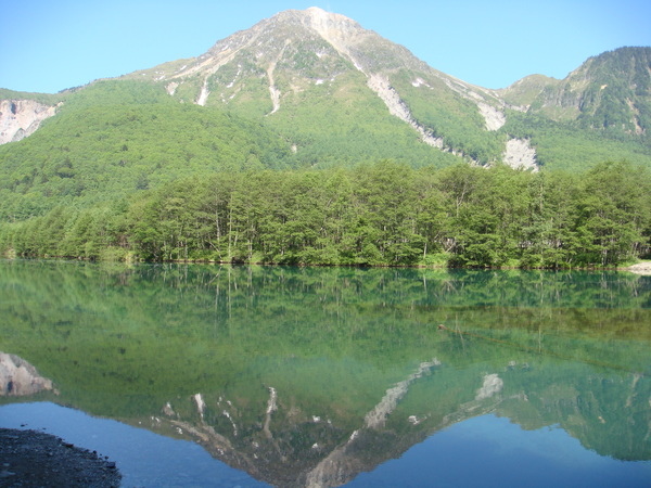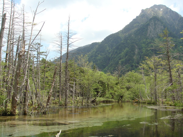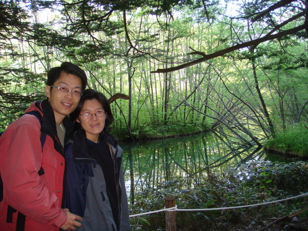 第一個景點:大正池,由於燒岳火山噴發,大量的泥石將梓川攔截而形成。