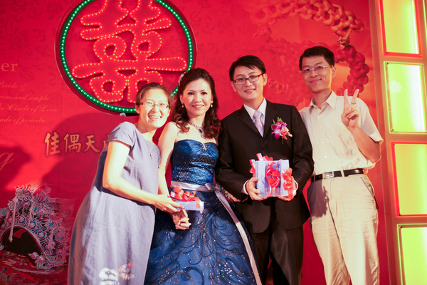 這場喜筵我們等了20年,伯村大學時代就立志要娶淑衿,事實證明:「有志者,事竟成」,他們的故事比王寶釧苦守寒窯還要長久,還要感人,有情人終成眷屬了!伯村好帥,淑衿好美!