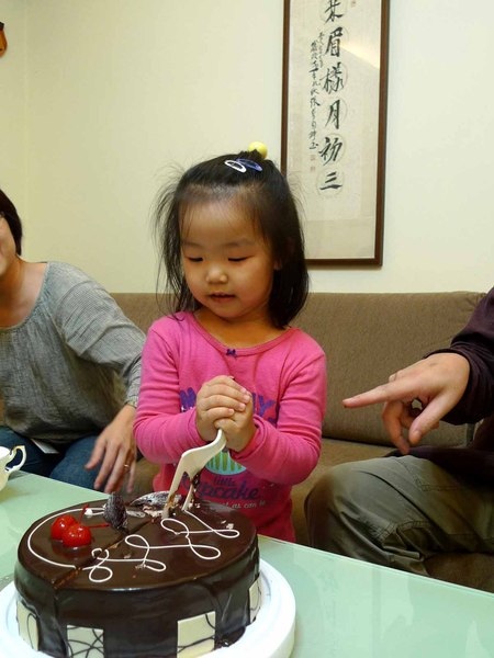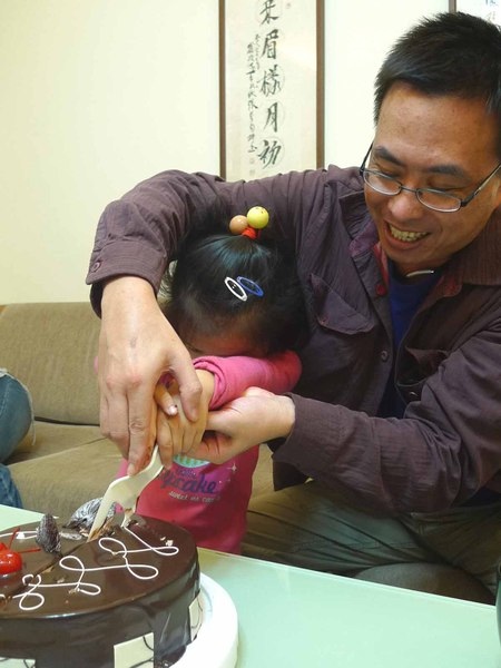 意猶未盡的小予欣還要再自己切蛋糕,到了喜歡嘗試自己動手的年紀喜歡當小幫手,很可愛。